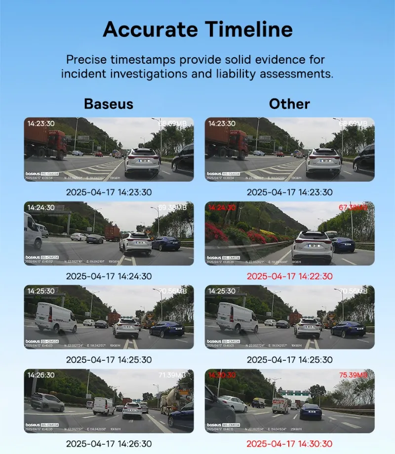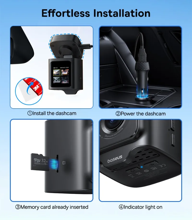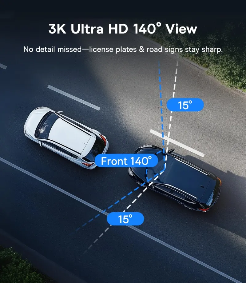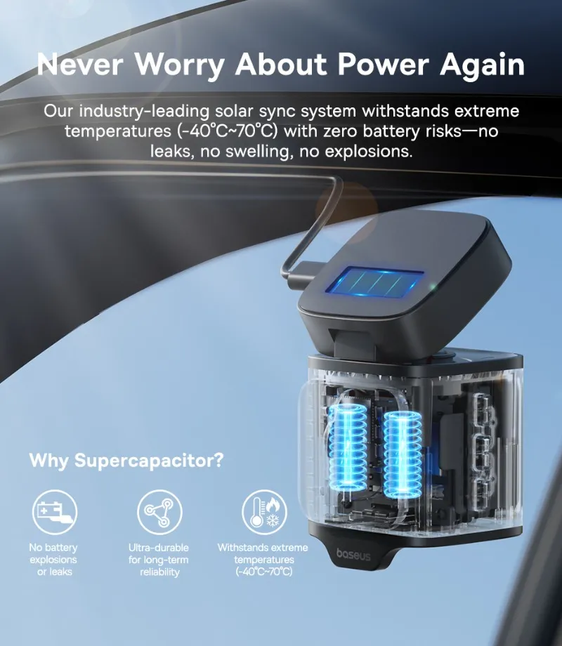Сонячна стабільність. Готовий до запису. Відеореєстратор Baseus PrimeTrip VD1, фронтальна 3K-камера 3K Ultra HD; ширококутний огляд 140°; система сонячної синхронізації; голосове керування ШІ; Wi-Fi 2,4 ГГц та керування за допомогою додатків; покращене нічне бачення; подвійний GPS + Galileo; просте налаштування
